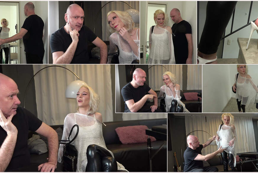 Ich war zu einer Fetisch Party eingeladen und hab mich richtig geil in Schale geschmissen mit meinen Latex Kleid, meinen Halterlosen Nylons und meinen mega geilen Plateau Stiefeln... Hatte mir einen Fahrer organisiert, der im Wohnzimmer wartete und den ich dann rief. Als er mich in dem Outfit so sah, war da irgendwie kein Halten mehr bei ihm...