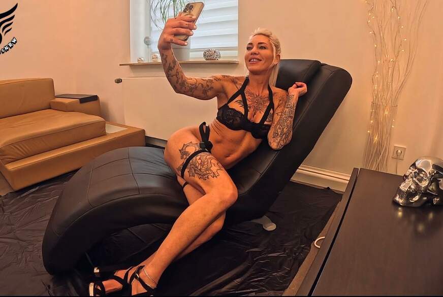 Sie liegt vor mir f*****t ihre F***e und wartet darauf das