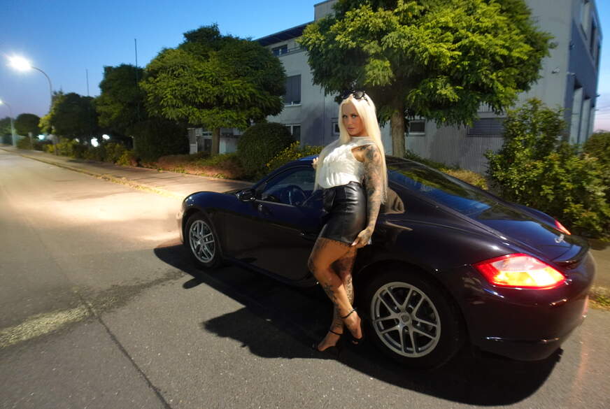Mach schön dein Maul auf und b**se den Dildo damit er schön n**s ist wenn ich ihn dir in deinen A***h schiebe und dich richtig d********e bis dir... Ledermini ohne Höschen, enges Wetlook Oberteil.