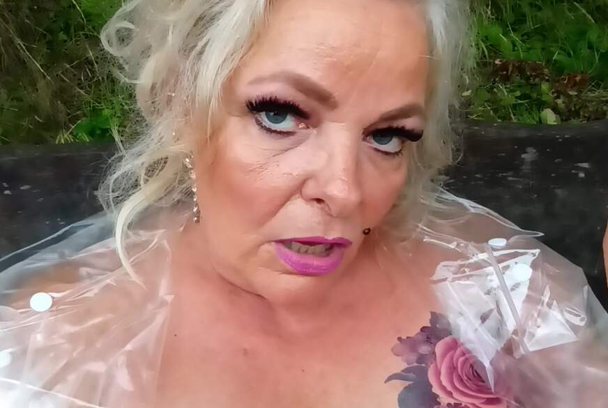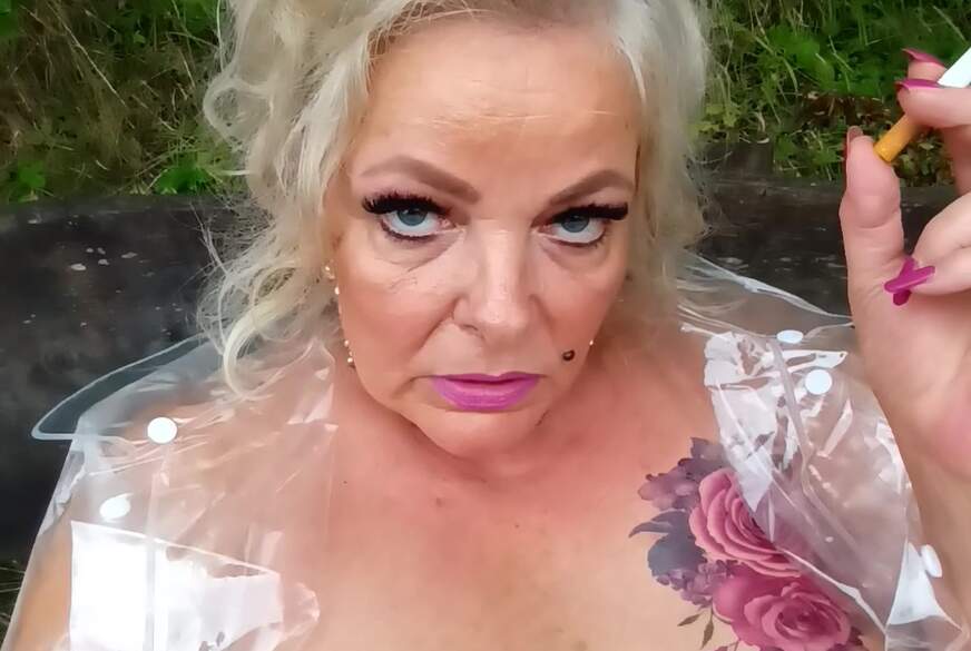 Auch ein Regentag kann mich nicht davon abhalten einen v******t geilen Nachmittag draußen zu verbringen. Ich bin geil auf Outdoorsex, mich im geilen n****gen Outfit, meine F***e und d**ken Titten zu präsentieren, genüßlich an der Zigarette zu s****n, meine n**se F***e und den S*****z vom Kameramann zu w*****n.