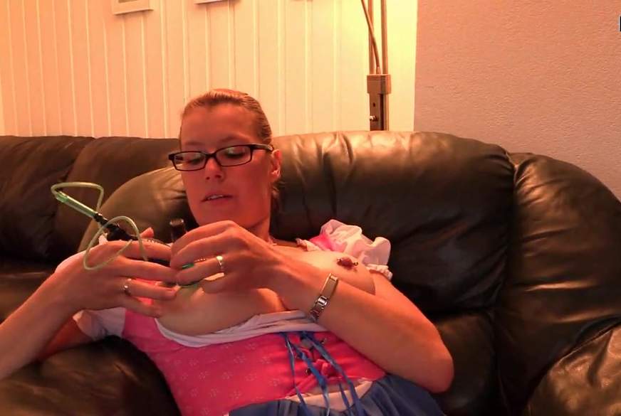 Ich masturbiere geil nachdem ich meine Nippel mit der Nippelpumpe h**t gemacht habe! Die Nippel werden geil eing*****t und ich mach den Nippelvibrator an! Danach pumpe ich mein 7cm S*********n auf! Mit der P***ypumpe geht es heiß her!