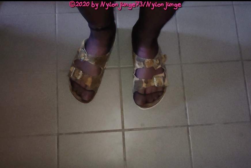 Am Frühen Morgen in der Küche stehe ich hier in Feinstrumpfhose - mein P***s baumelt leicht vor sich hin und ich koche mir eine Kanne Kaffee. Ja, Du siehst richtig - ich brühe mir das schwarze Getränk ohne Maschine - und trage eine passende Nylon dazu. An meinen Füßen sind alte Latschen einer Freundin im Camouflage Look. Ausgelatscht machen sie einen tollen Fuß und auch der Duft der Nylon beim abendlichen Ausziehen ist Super Lecker. Für einen Fetischisten wie mir ist das der Hammer. Dann drückt auch noch meine B**se und ich muss ins Bad zum K*o. Der gelbe Urin sprudelt aus der zarten E****l in die Toilette. Ende und ab zum Kaffee.