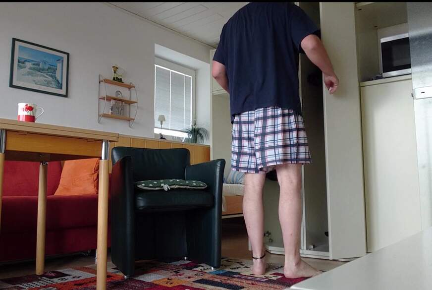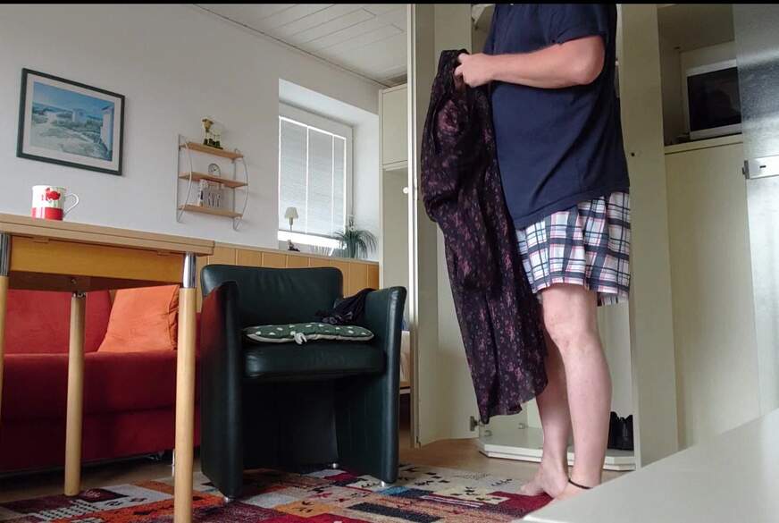 Die Erste Nacht im Urlaub an der See war sehr Unruhig. Jetzt regnet es gerade draußen und auch der Wind ist stärker geworden. Daher werde ich mich erst einmal anziehen und mir dann einen Kaffee machen. Zu einen Spaziergang lädt das Wetter nicht ein - daher werde ich mich in der Wohnung aufhalten und mir meine mitgenommene Damenwäsche anziehen. In diesem Body passt mein molliger behaarter Körper mit dem kleinen S*****z bestens hinein. Denke dazu werde ich mir noch Halterlose Strümpfe anziehen und ein Kleidchen drüber. So kann ich den Tag auf dem Balkon verbringen und etwas Spaß mit der Kamera haben.