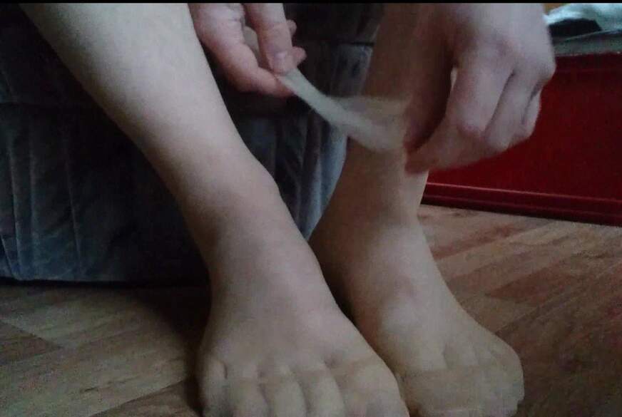 Da man nicht großartig raus soll - habe ich es mir in Strumpfhosen und Kimono auf dem Bett gemütlich gemacht. Bin nebenbei etwas am Chatten und Fotos am machen. Inspiriert durch viele andere Clips - zeige ich auch gerne mal meine Füße und Sohlen in den Nylons. Der Blick auf dem Display von den eigenen Fußsohlen macht mich schon Scharf. Könnte ich jetzt an ihnen Riechen und L****n - bei dem Gedanke wird mein S*****z h**t. Also fange ich mal an zu Spielen und mit einer Masturbation.