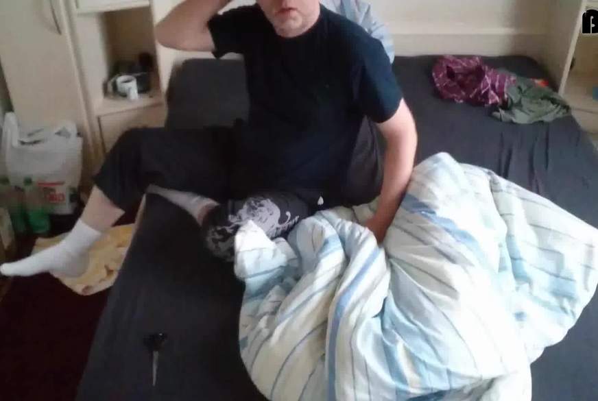 Man wacht mit einer M*********e auf und niemand ist da der sich um den h**ten S*****z im Bett kümmert. Was bleibt mir dann also als Solo Mann anderes übrig - als sich selber an der Nudel zu spielen. Das Bettzeug ist zum F****n sehr gut geeignet und sehr weich wie eine M****i. Leidere fehlt die F****t im Kopfkissen. Ich beginne an den Füssen zu schwitzen und muss meine Hausballerina ausziehen. Ich F***e meine Hand und stecke mit einen Plug für die P******a in das A*******h. Dann dauert es nicht mehr lange und ich komme zum Orgasmus. A******n vom S****a auf meinen behaarten molligen Bauch. GEIL war das.