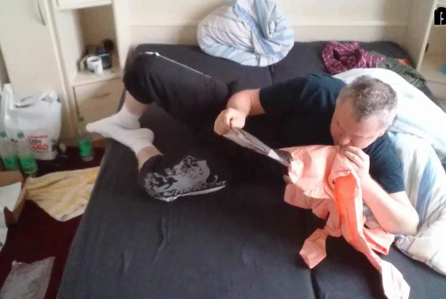 Nackt mit meiner Maske laufe ich in der Ferienwohnung herum und mein kleiner P****l freut sich sehr - das er auch schon etwas am Sabbern ist. Der kleine aber d**ke Hodens**k ist voll mit meinem S**t. Damit ich die Geilheit noch steigern kann - ziehe ich meine alte stinkige Strumpfhose an. Im Teil vom Höschen sind auch schon L****r und die Teil der Füße riechen sehr gut nach meinen Füßen und einige Fl****n vom S****a sind auch zu sehen.