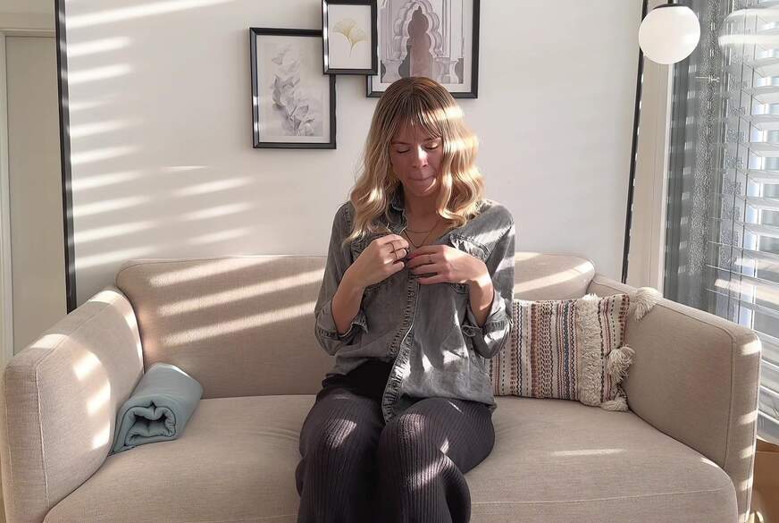 Ich bin gerade nach Hause gekommen und trage noch mein Büro Outfit mit Brille, Bluse, Rock und Halterlosen Nylons. Gefällt dir was du siehst? Ich teasere dich an und lutsche geil an meinem F****r. Stellst du dir gerade vor, dass das dein h**ter F********l ist, den ich dir b**se? Ich heize dir mit Dirty Talk an, ziehe meine Bluse aus und beginne mit gespreizten Beinen mein n**ses F******h zu w****n. Oh yes, das ist soo geil. Ich drehe mich um und beasrbeite meine F***e d***y. Stehst du auf meinen großen prallen F**ka***h? Bringt er dich schon zum s******n? Jetzt f***e ich mich noch zum Orgasmus. Wow das hat heftig gezuckt. Würdest du mich gern mal in diesem geilen Office Outfit f****n?